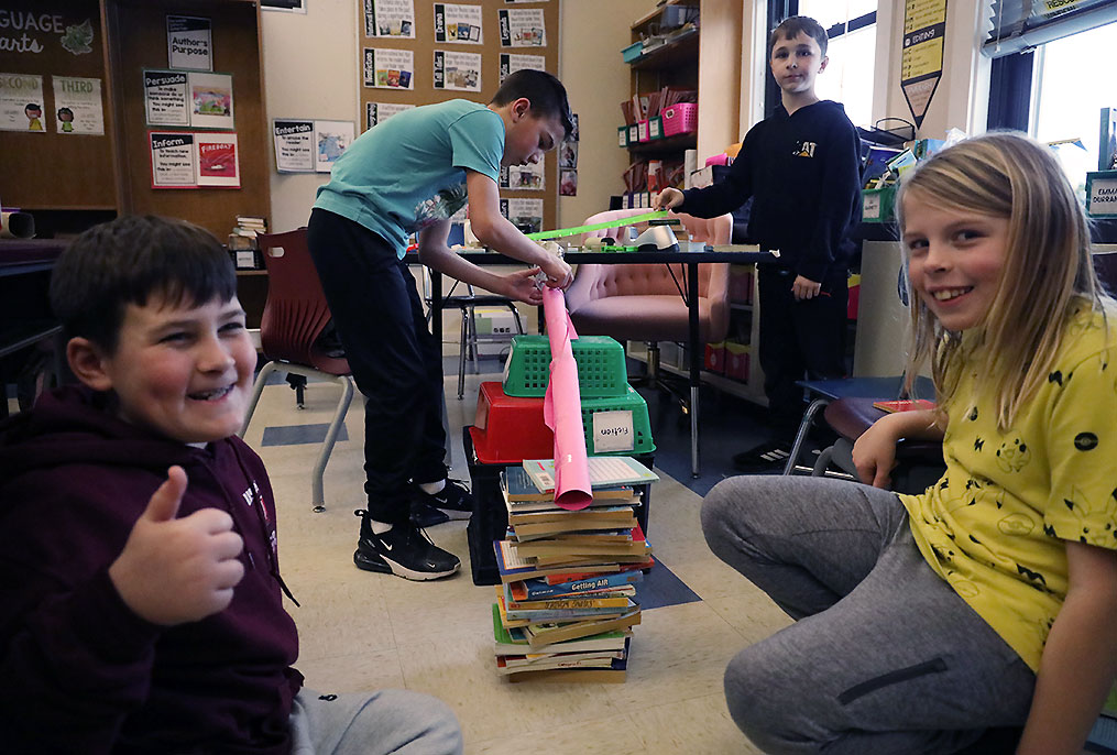 Fourth graders perform hands-on experiments at the high school's Science Demo Day.