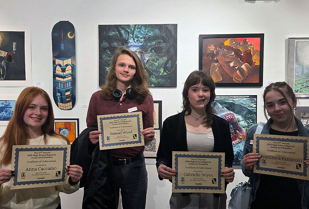 Congratulations to BH-BL High School student artists Hailey Becker (not pictured), Anna Caccamo, Francesca Fantauzzi, Gabrielle Noyes, and Samuel Wood whose work was selected for the 27th Annual High School Regional Juried Art Exhibition at the Albany Center Gallery.