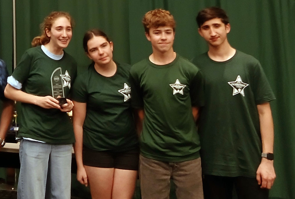While the final minutes were a nail-biter and a few late-breaking solutions bumped the “green team” from the overall podium, the students still earned a well-deserved Honorable Mention and a trophy for the school size category. Congratulations to the green team of Mikayla Botta, Natalie Manon, Gabriel Matthews, and Brayden Walton for their outstanding work.