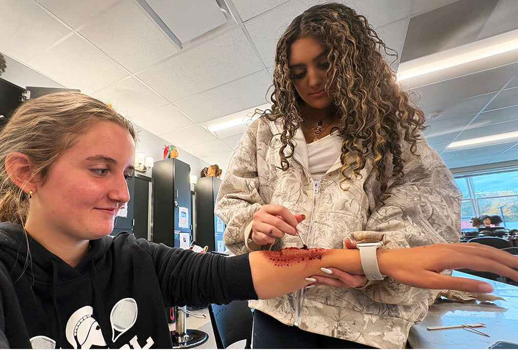 Perhaps they all won’t land jobs backstage in Hollywood, but Cosmetology students at the Career & Technical Education (CTE) Center, like BH-BL senior Sarah Nugent, did learn how to turn the human body into an artistic—albeit ghoulish—venture.