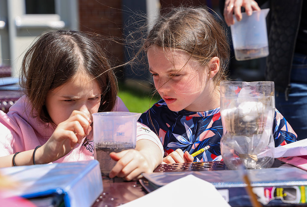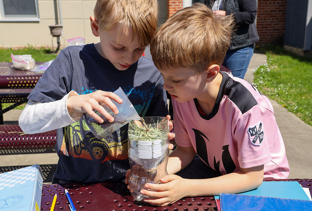 Most recently, the students turned their attention to a critical survival need: potable water. Working in pairs, they brainstormed and designed intricate filtration systems. Using a mix of natural and representative materials—including sand, pebbles, hay, sticks, and cotton (to replicate clothing material)—they mapped out layer-by-layer plans to turn murky water into a clean resource, explained Maggie Malatesta the Charlton Heights Elementary School PACE/Enrichment teacher.